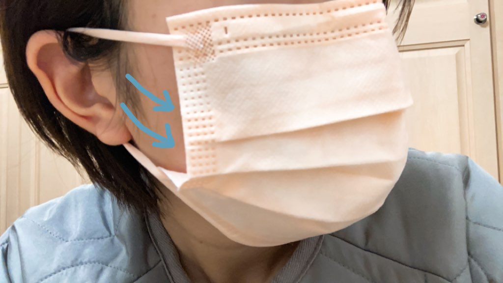 上下のプリーツの余りが少なくなって、頬と顎まわりがだいぶフィットしました!!